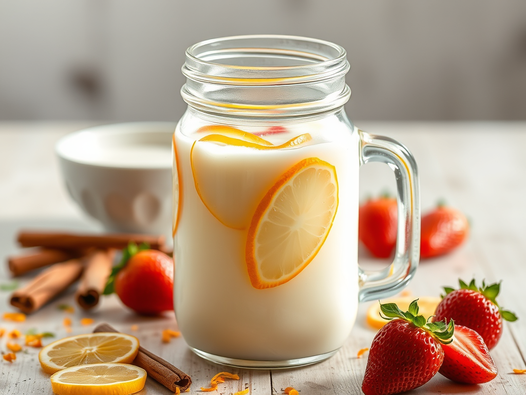 Once you’ve finished making your kefir (see the original Kefir post for steps) and removed the grains, it’s time for a second ferment. Pour the kefir into a clean jar, then peel an organic lemon or orange using a vegetable peeler—aim for one long strip of zest. Drop the peel into the jar and seal it with a lid.